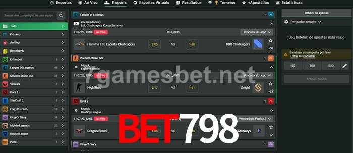 A aposta Bet798 oferece aos jogadores a experiência mais conveniente de apostas em eSports!